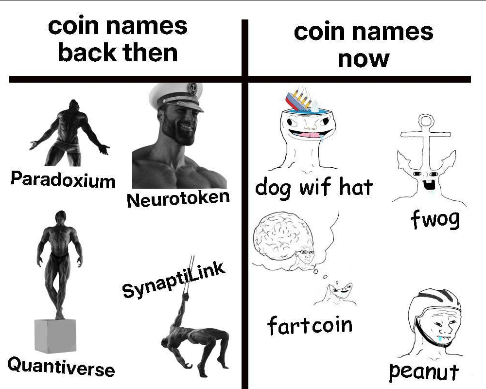 By 2024, the meta morphed into Solana celeb memecoins: hyped up launches, thin liquidity, bonding curves, and attention as the only utility. They rocketed, then shortly after gravity did its thing 👎️