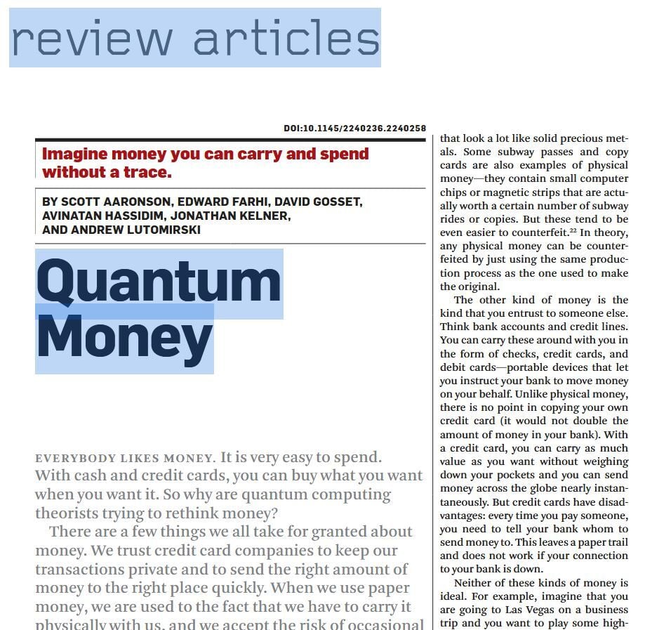Talking about taking jabs at crypto… the Quantum AI team and a few academics resurfaced a 1960s concept called “quantum money” 🧠 👇️